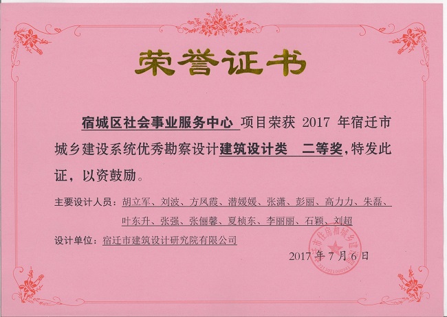 1、宿城區(qū)社會事業(yè)服務(wù)中心項目中獲建筑設(shè)計類二等獎
