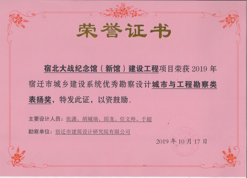 2、宿北大戰(zhàn)紀(jì)念館(新館)建設(shè)工程 城市與工程勘察類表?yè)P(yáng)獎(jiǎng)